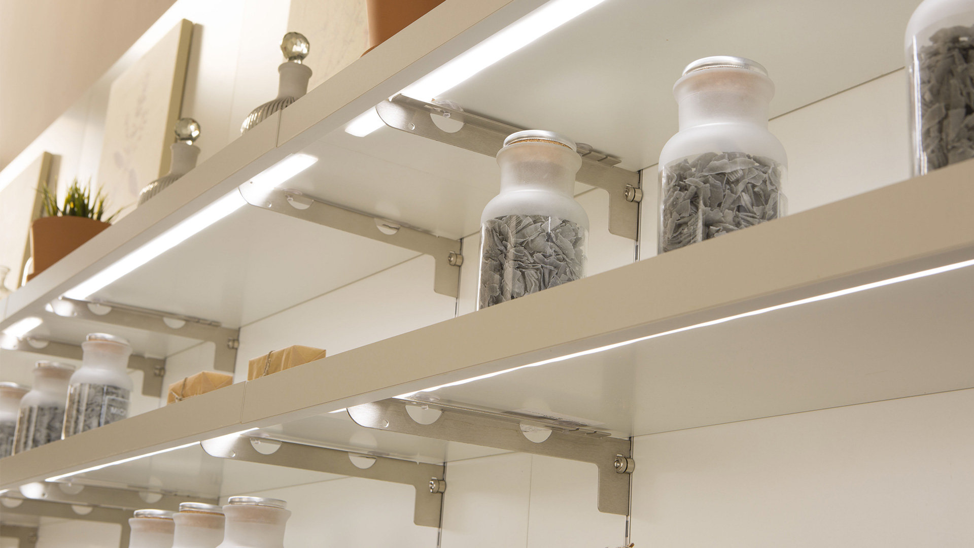 Possibilité d'ajouter en option un éclairage LED au dessous des tablettes.