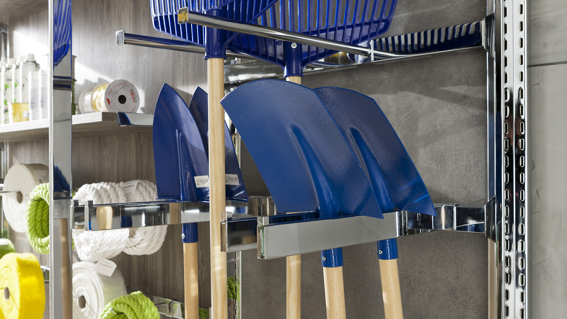Tous les accessoires pour panneaux rainurés sont compatibles avec ce système.